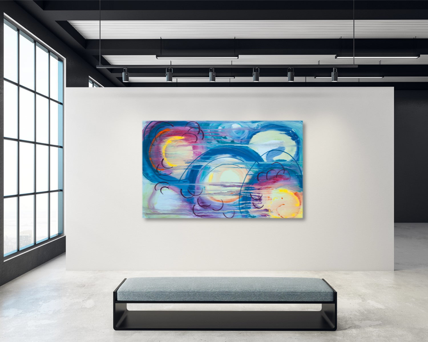 Print of an original abstract painting by Austin artist, Dianne Bartlett. Timeless, contemporary art to help brighten up dull walls and make any room pop with color and add a vibrant conversation piece to your home. An opportunity to invest in an original design - these modern colors and patterns easily match almost all decor.