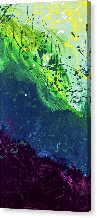 Contemporary abstract painting with unique design and bright colors. Add a conversation piece to your home with original art. Enamel paint on gallery wrap canvas with acrylic finish. Signed on the back so that you may hang it vertically or horizontally.