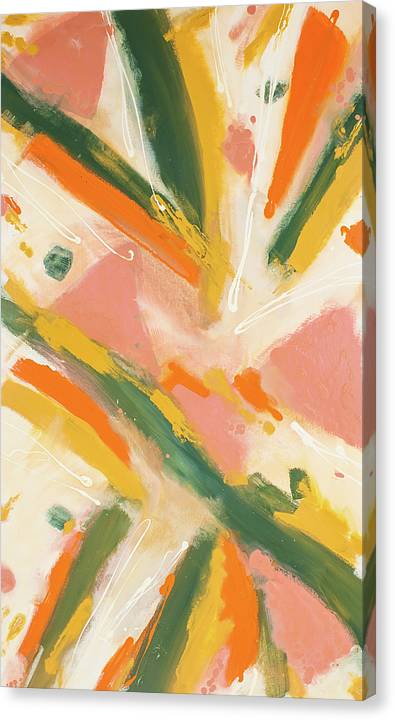 Contemporary abstract painting with unique design and bright colors. Add a conversation piece to your home with original art. Enamel paint on gallery wrap canvas with acrylic finish. Signed on the back so that you may hang it vertically or horizontally.