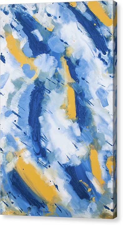 Contemporary abstract painting with unique design and bright colors. Add a conversation piece to your home with original art. Enamel paint on gallery wrap canvas with acrylic finish. Signed on the back so that you may hang it vertically or horizontally.