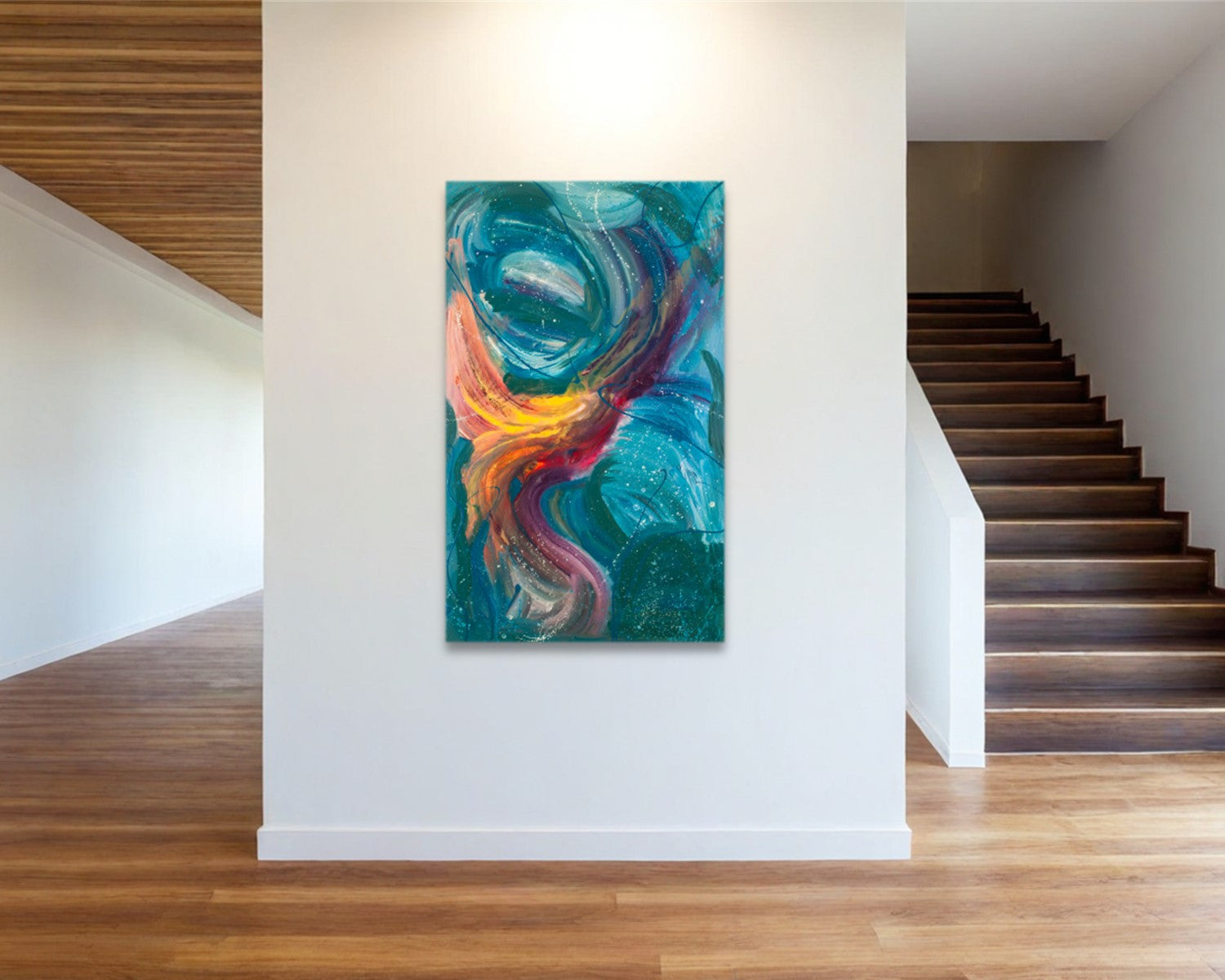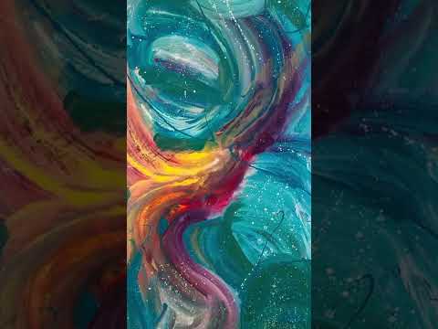 Contemporary abstract painting with unique design and bright colors. Add a conversation piece to your home with original art. Enamel paint on gallery wrap canvas with acrylic finish. Signed on the back so that you may hang it vertically or horizontally.